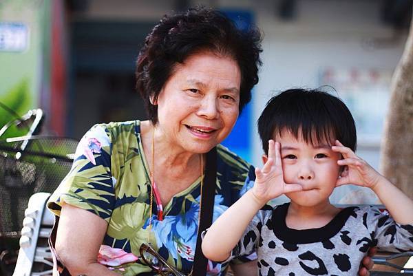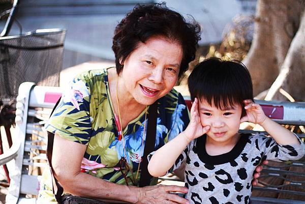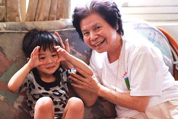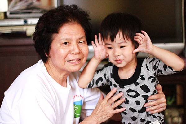 一進門就先和外婆來個合照的鏞鏞顯得好開心