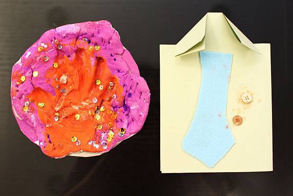 將紙黏土和裝訂好的吸盤掛飾紙板黏在一起