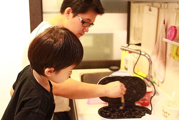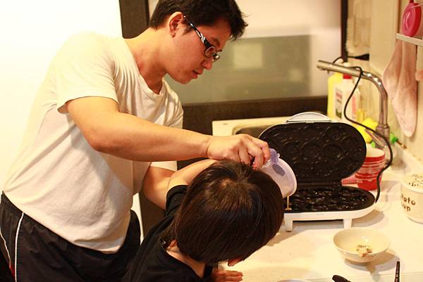 鏞鏞和爸比可以一起做雞蛋糕了^^