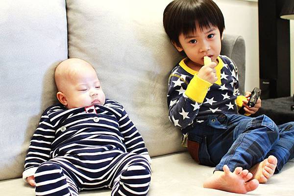 回家後拿起相機捕捉鏞鏞和甫甫可愛的一面