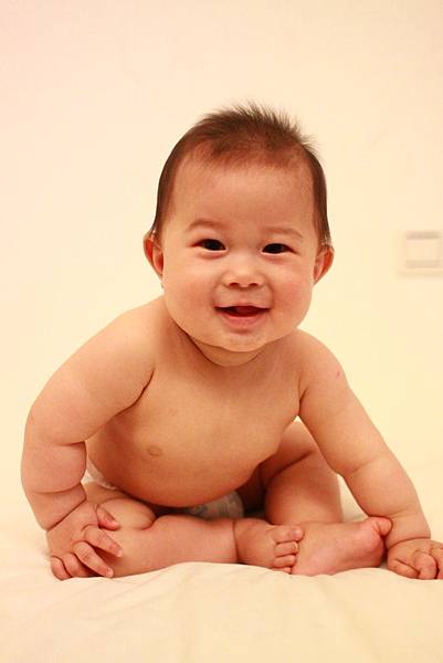六個月大的甫甫持續保持愛吃、愛睡、愛哭、愛笑、愛活動