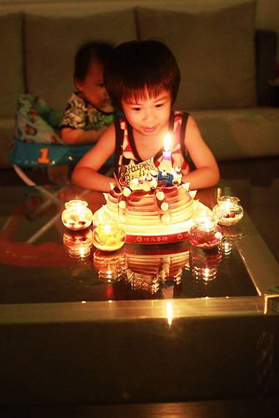 插上蠟燭的一剎那鏞鏞好興奮啊