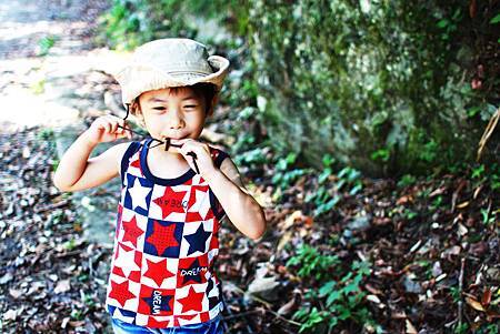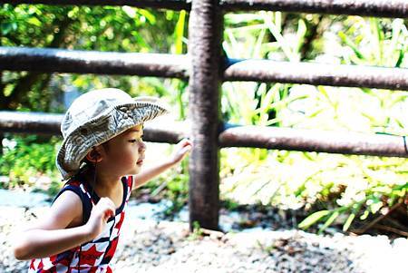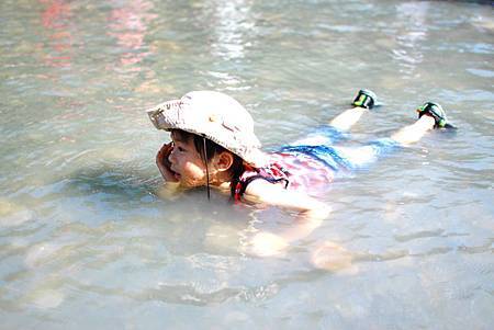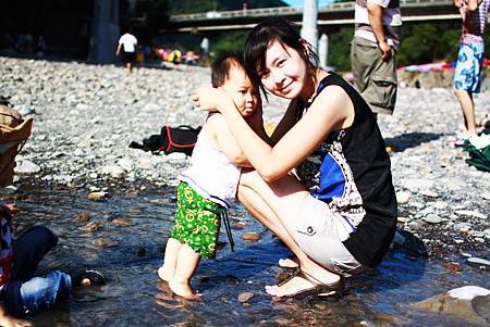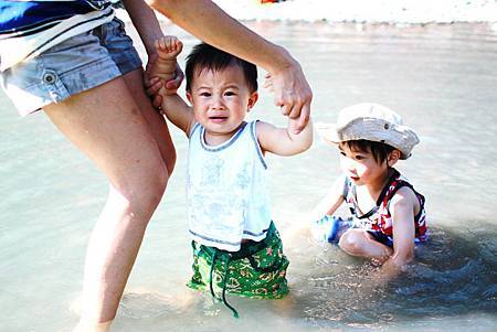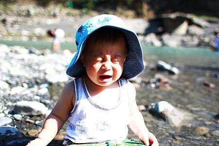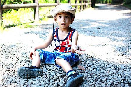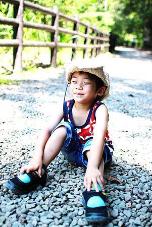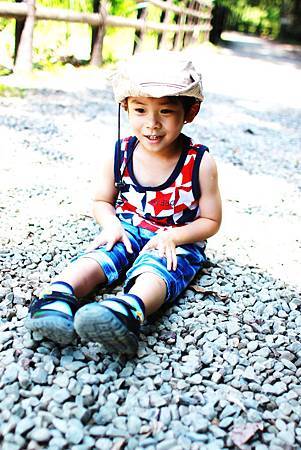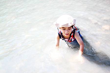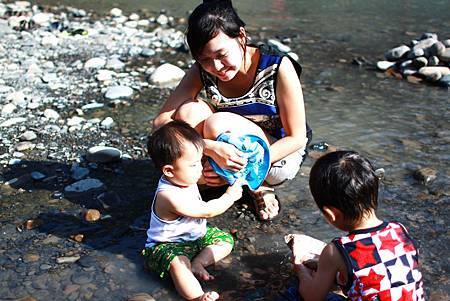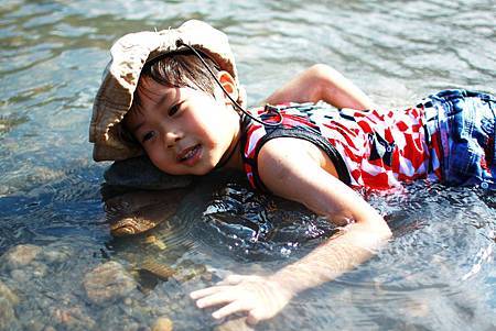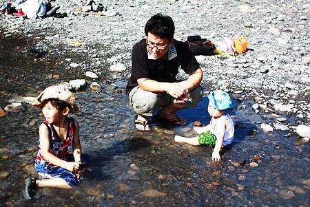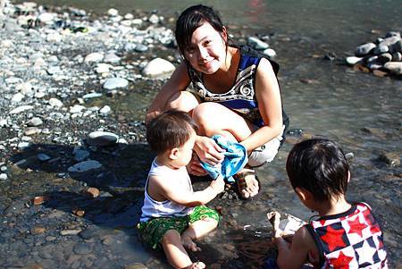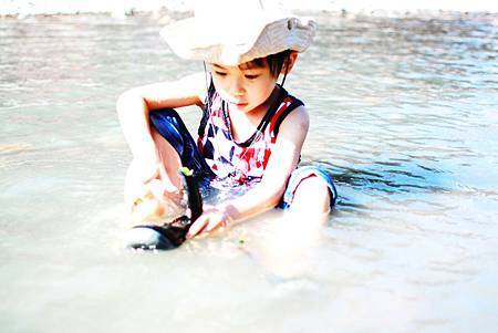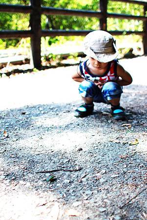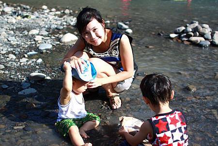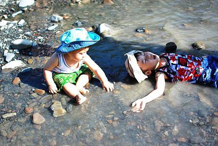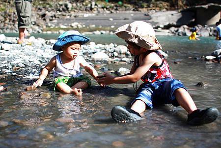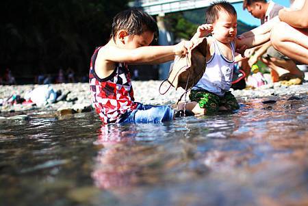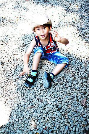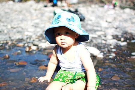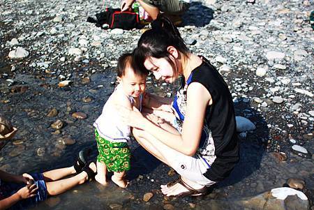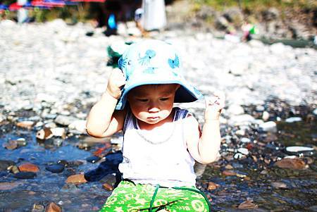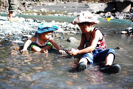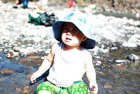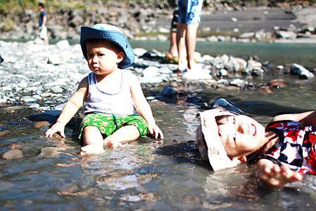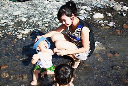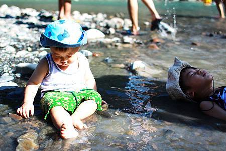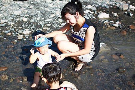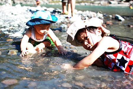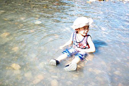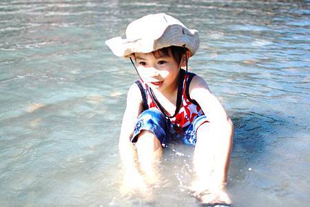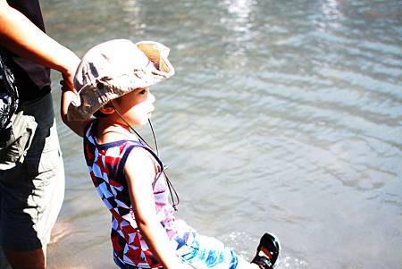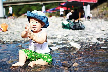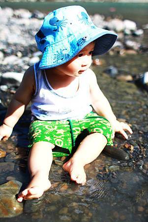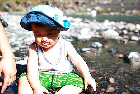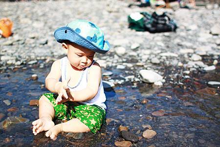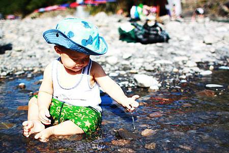甫甫也能自得其樂地玩玩石頭摸摸水