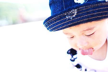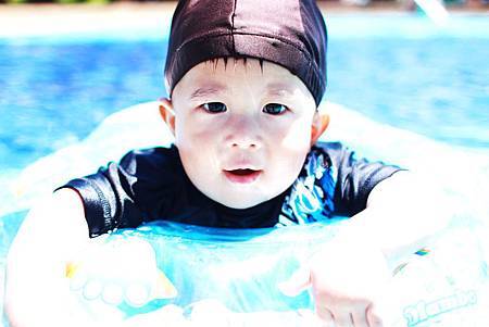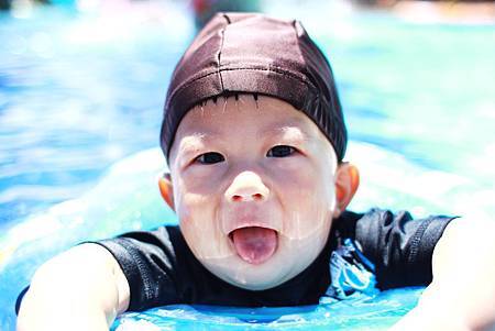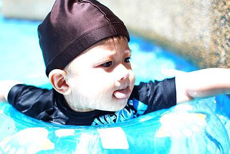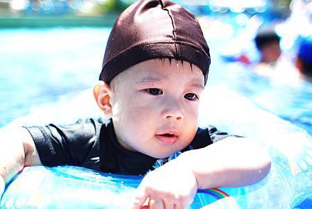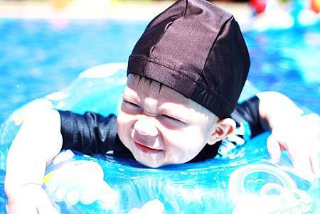 每次甫甫戴泳帽都會變成單眼甫~嘻^^