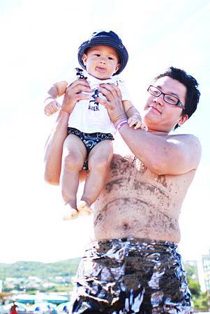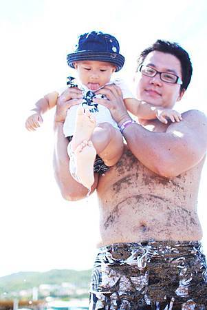 一上岸的鏞鏞和甫甫整個都黑了一個顏色