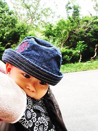 甫甫被媽咪揹著健行好久疲憊的臉....