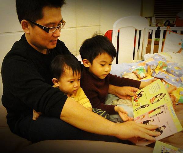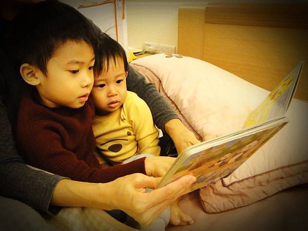 晚上媽咪都會花時間抱著兩兄弟一起念故事