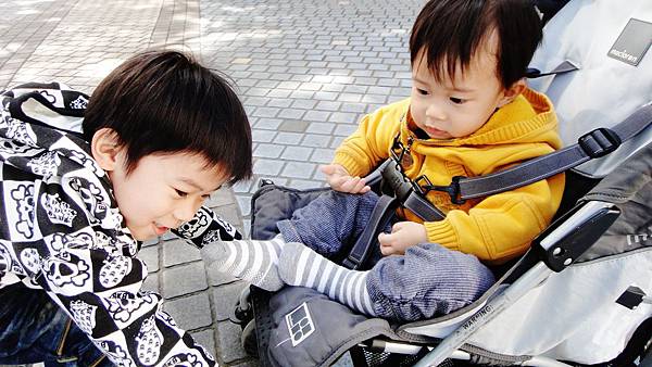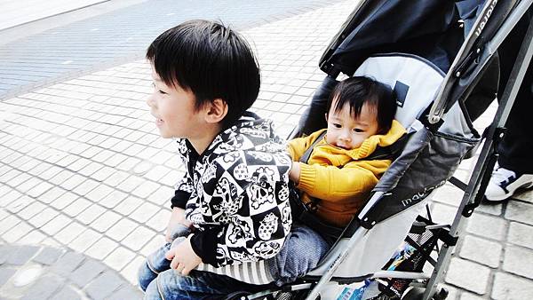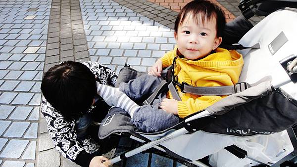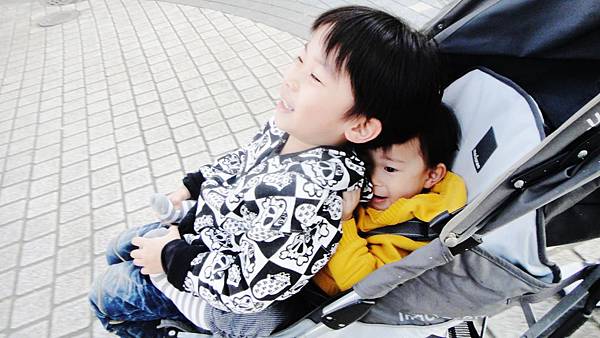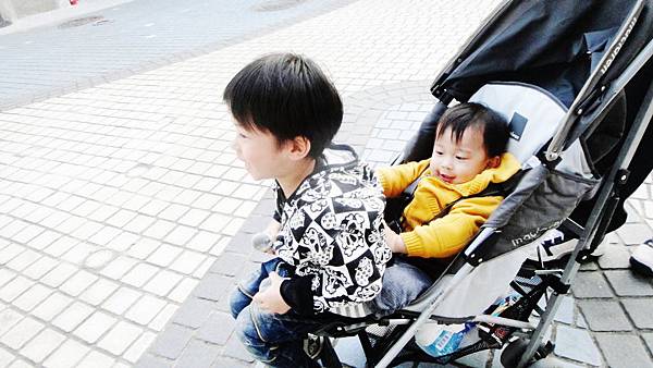 又坐了親子推推車
