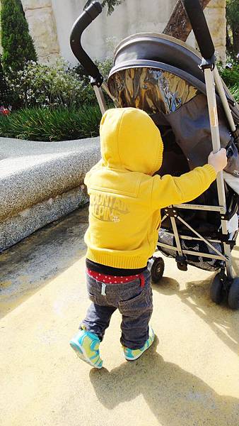 只好在外面散散步~推推車~~^^
