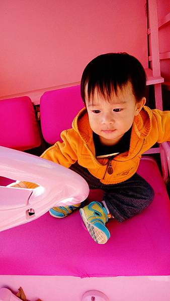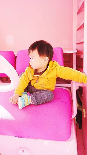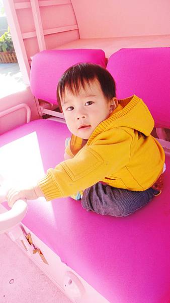 像是這個飛象一歲四個月的甫甫就坐得很開心