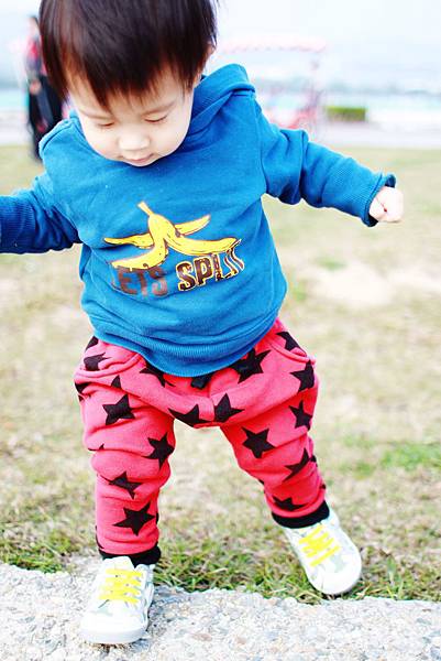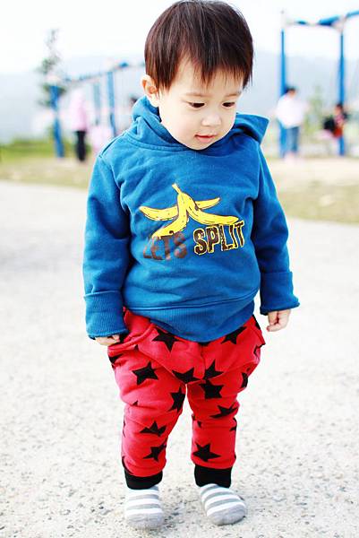 (是說媽咪啊...怎麼忘了給甫甫穿鞋走路了啦!!)