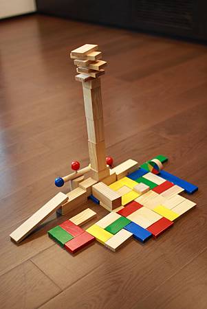 鏞鏞就偏把原本應該要是拿來一個一個排好隊的骨牌變成平面