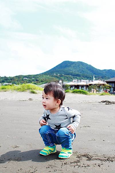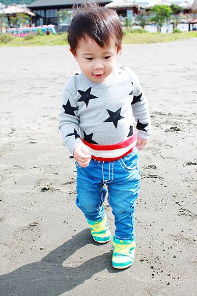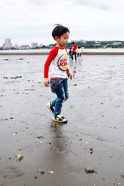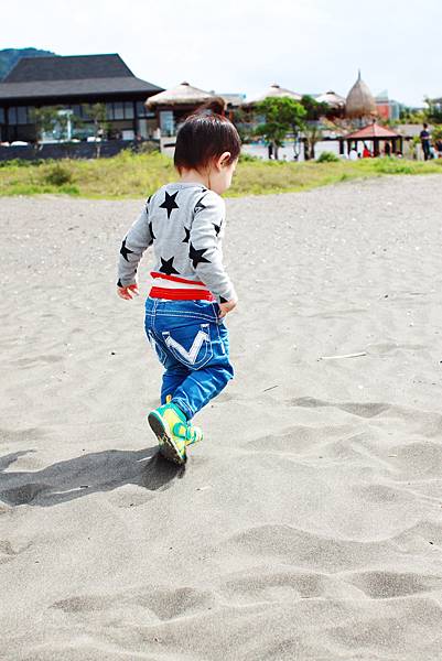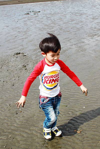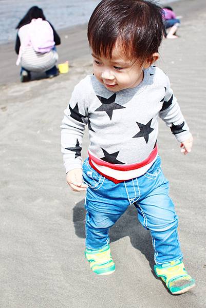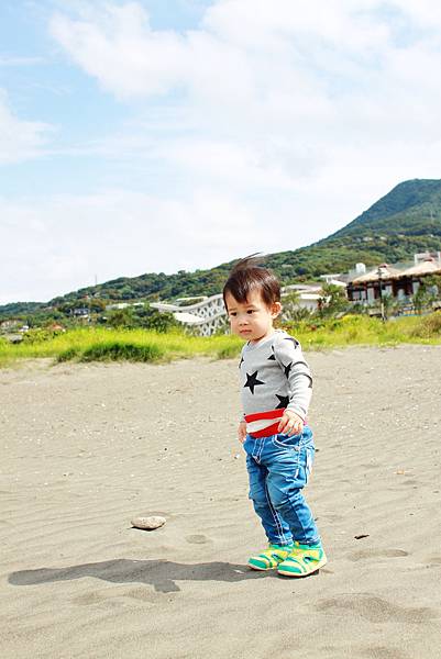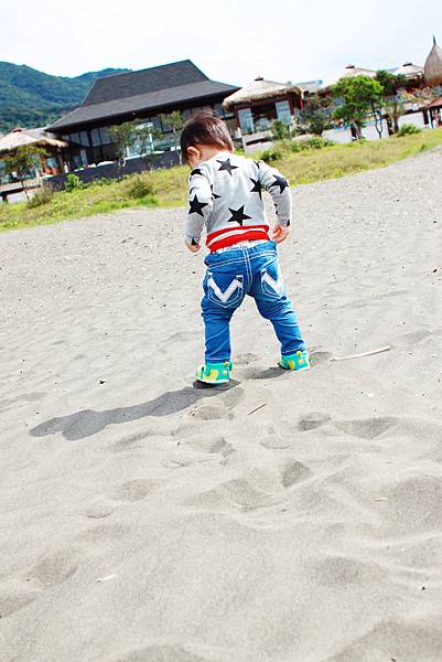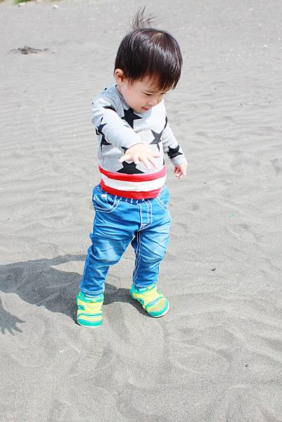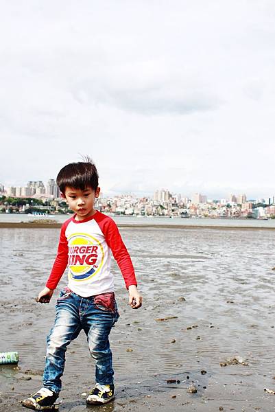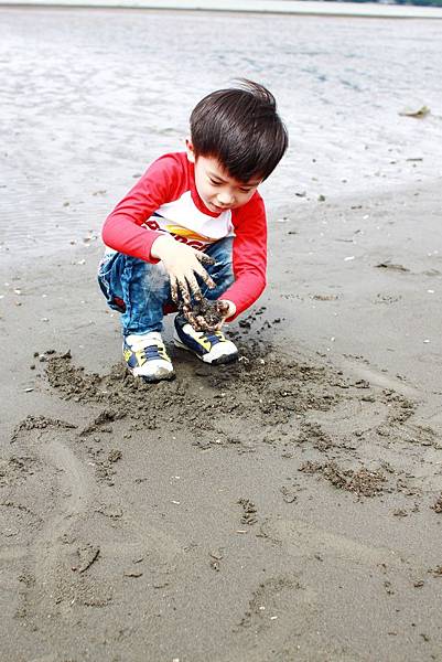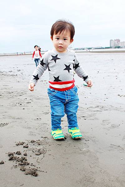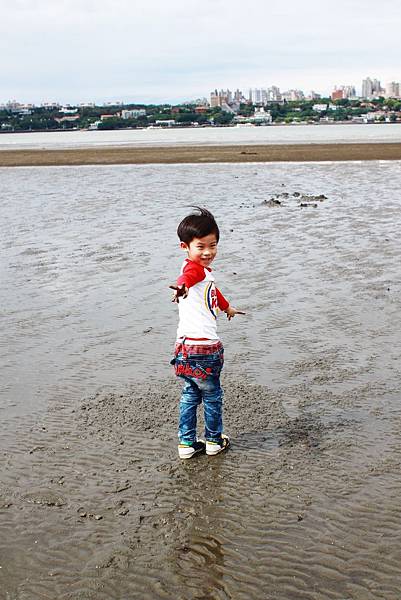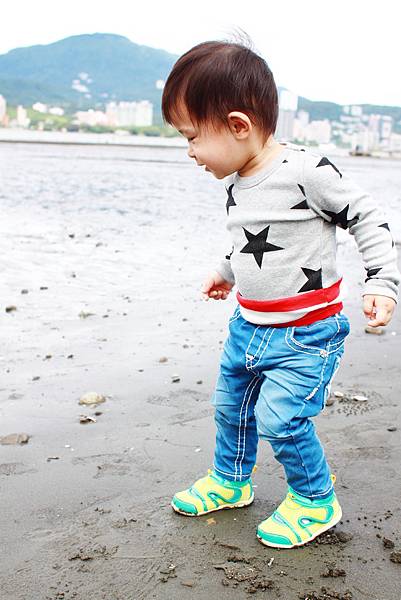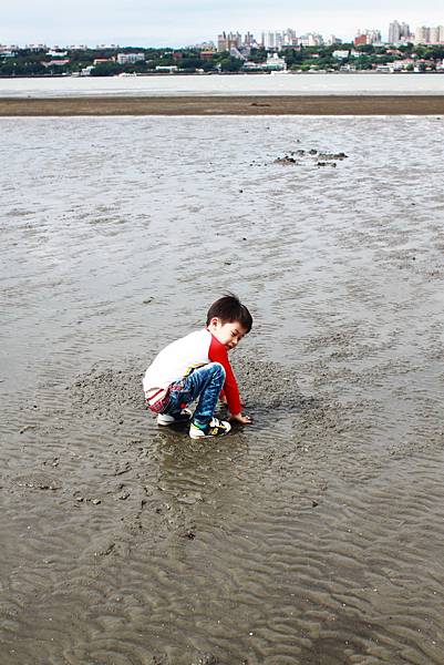 鏞鏞去摸泥沙的時候媽咪有些遲疑