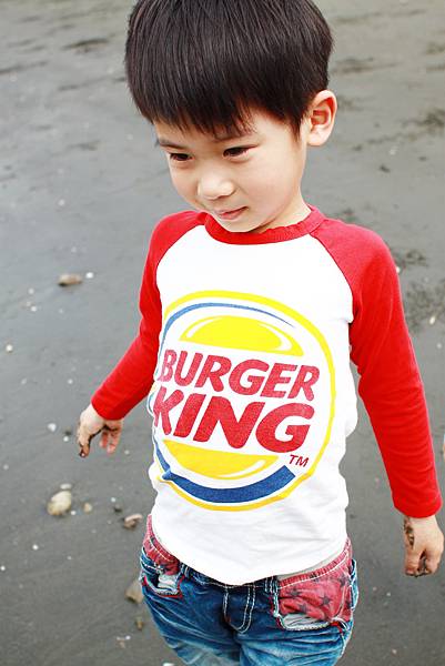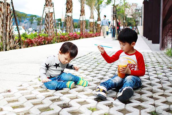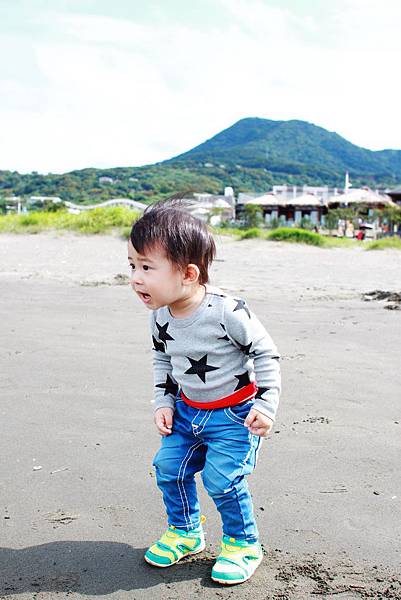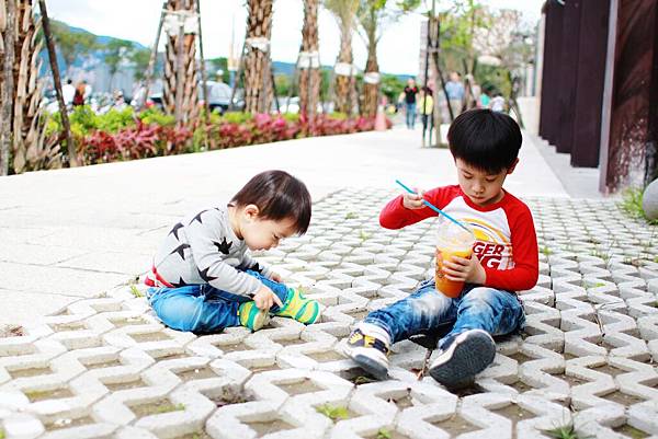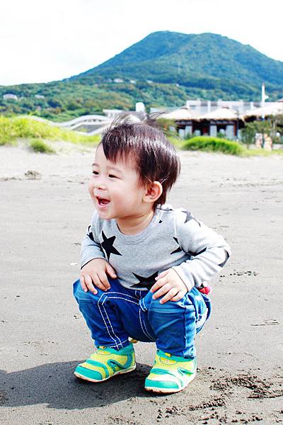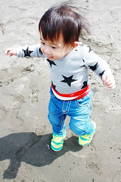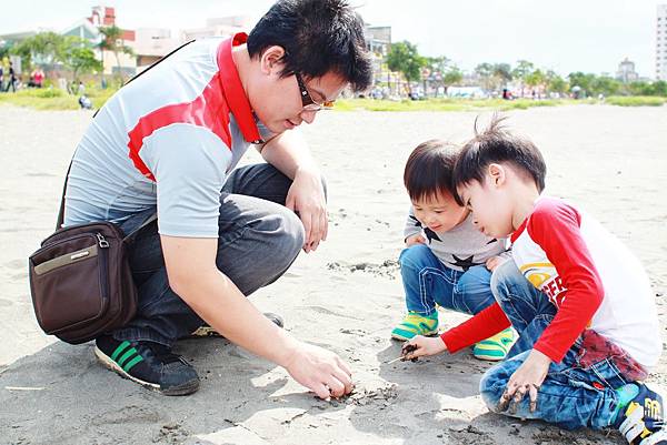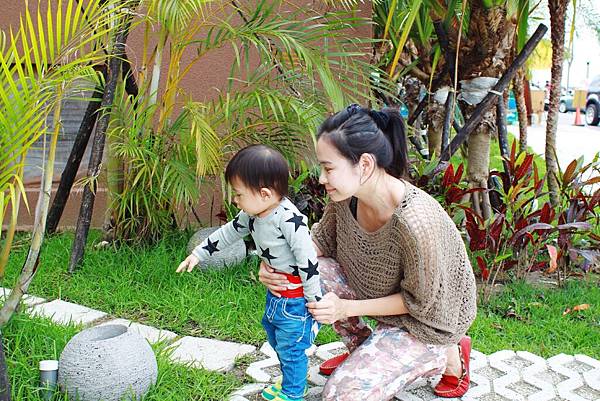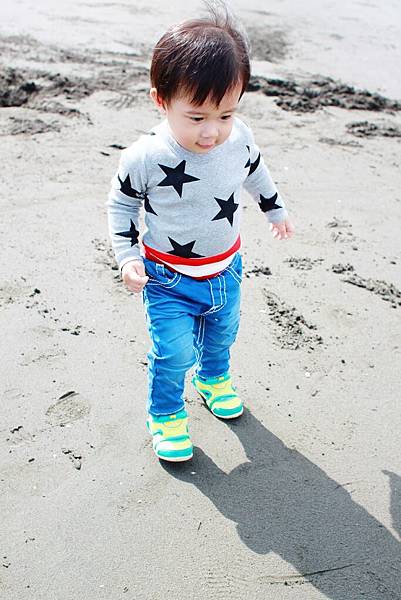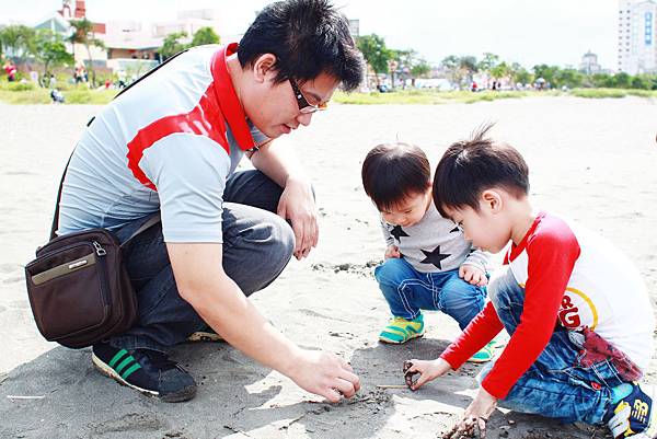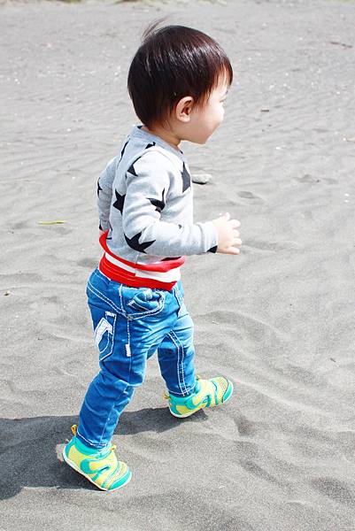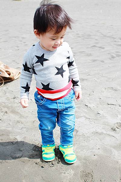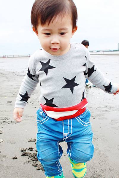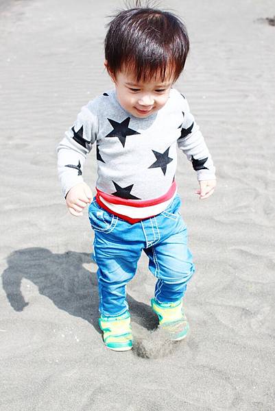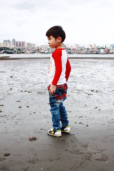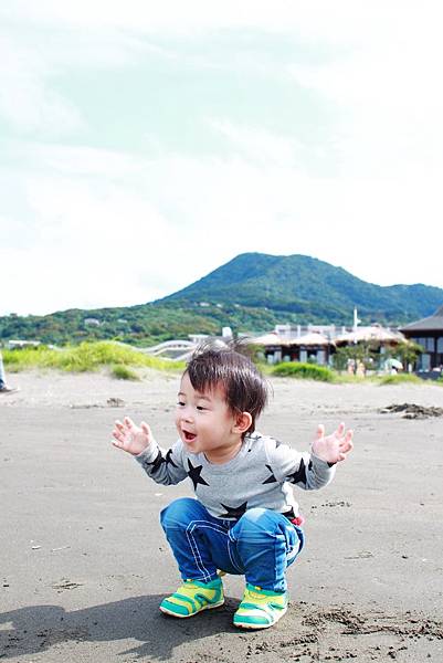 鏞鏞去摸泥沙的時候媽咪有些遲疑