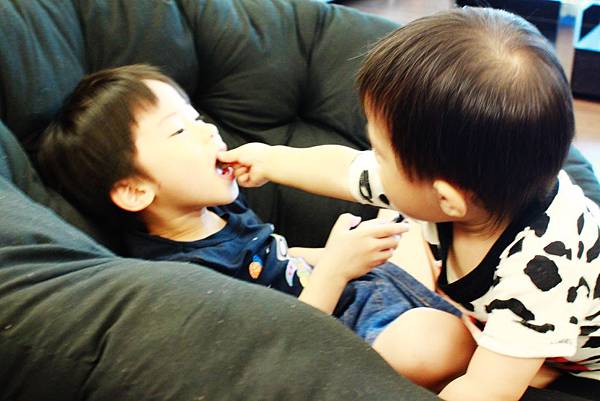 甫甫竟然會貼心的拿葡萄乾給鏞鏞~~