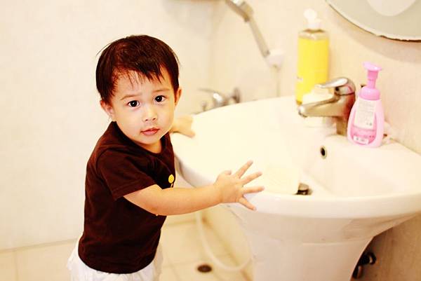 已經會像一般小男生一樣站在馬桶前面噓噓
