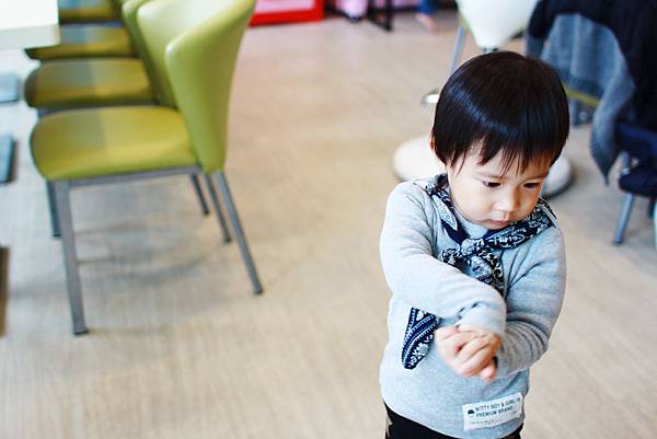 在等待餐點的時候甫甫就在座位附近玩耍+閒逛~
