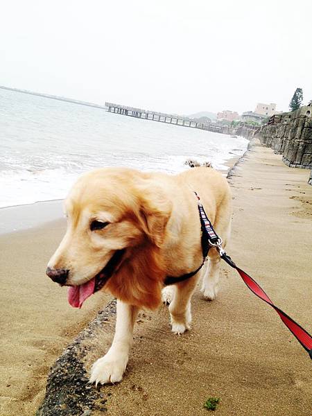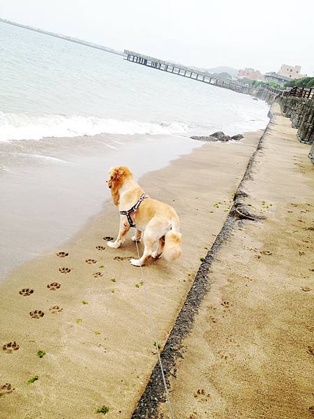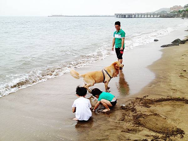 金寶第一次面對海邊有些小緊張