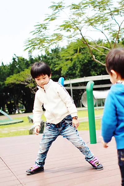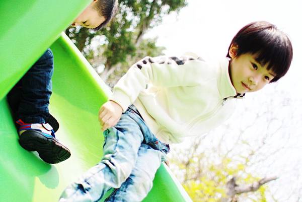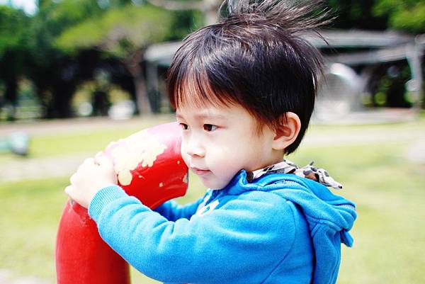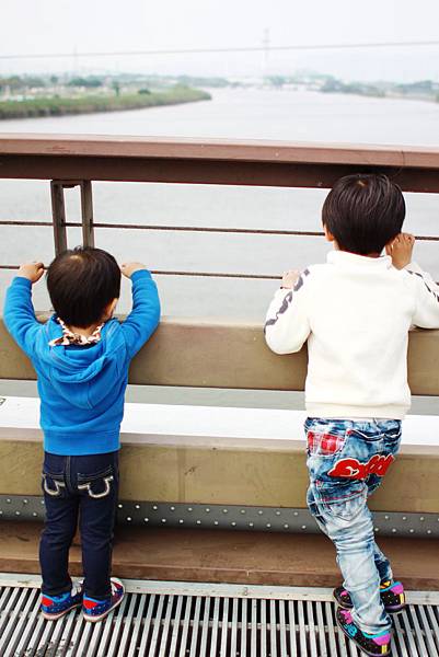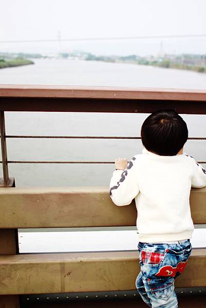 鏞鏞甫甫在橋上看著湍急的河水也覺得好新鮮刺激