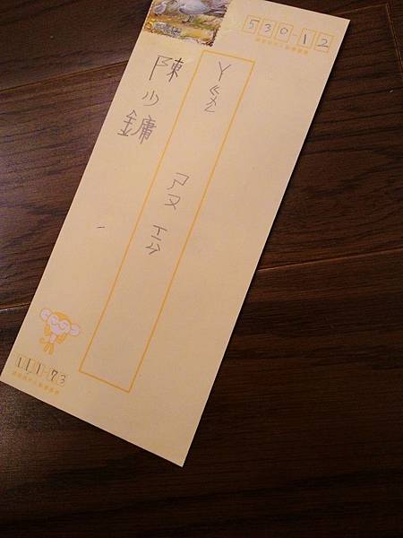 鏞鏞將三張小紙條放入信封貼上郵票
