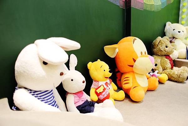 好多個可愛大玩偶等一下將會跟孩子們一起聽故事、學習生活安全喔!