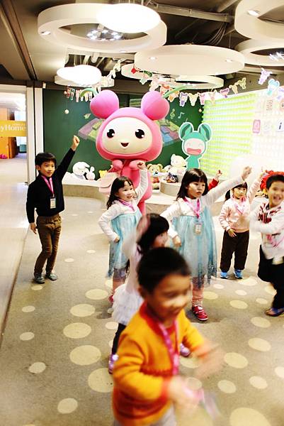 孩子們都搶著和櫻桃寶寶握手抱抱!