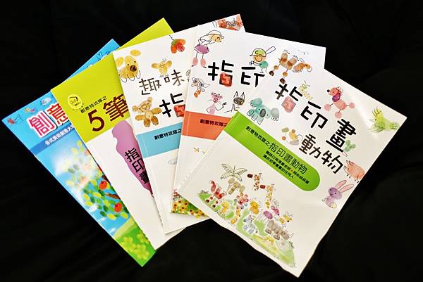 這套指印畫書有四本教學書、一本空白創意塗鴉本