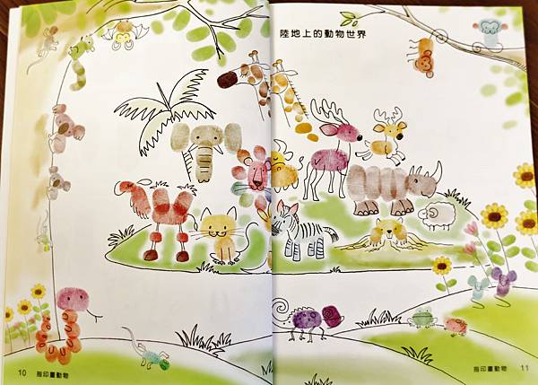 而動物的指印畫也非常可愛,除了書中都會有幾張大匯集圖