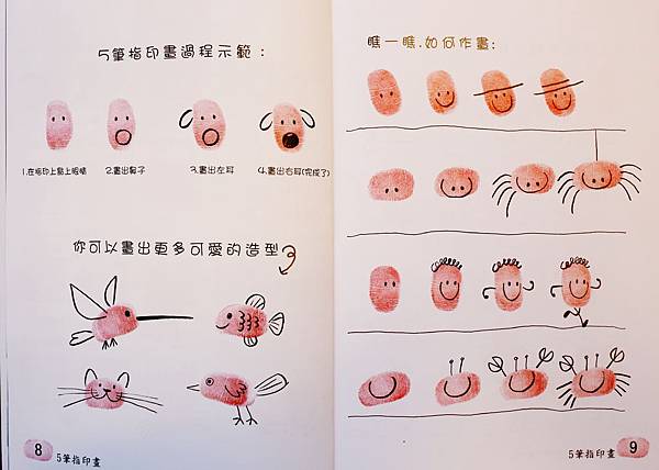 我一翻開書,有種很驚訝又覺得有趣的感覺~~"怎麼可以把指印畫發揮得那麼俏皮又可愛啊!"