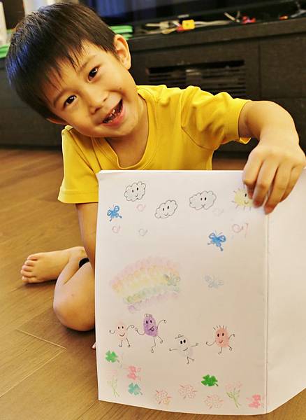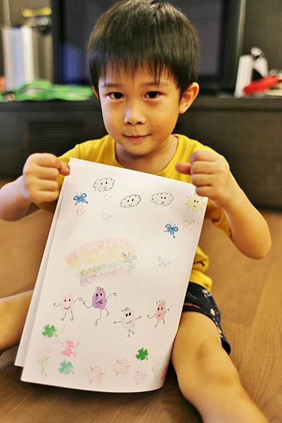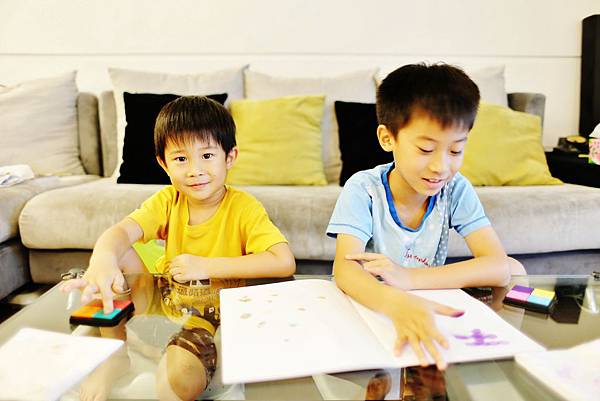 來看看讓鏞鏞甫甫兩兄弟在創作時開心唱歌、開心大笑的指印畫工具組
