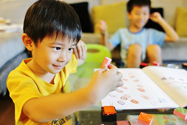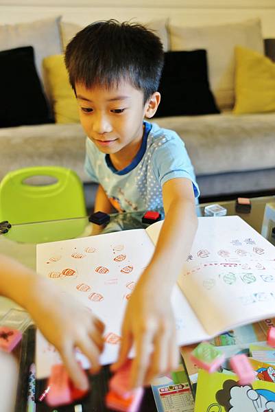 印章組也是鏞鏞甫甫覺得很有趣的,好奇的鏞鏞把每個印章都先蓋一次
