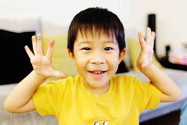 十隻手指頭沾滿了顏料也不怕,因為只要用清水洗一下就清潔溜溜