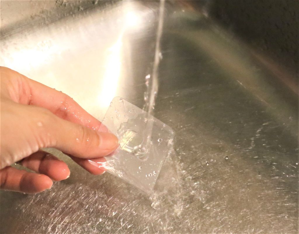 《超黏耐重無痕水洗重複環保勾》也是用清水洗一洗晾乾,就可以再次使用囉!