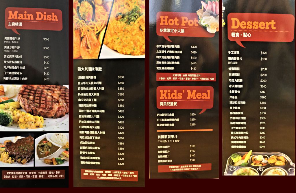 冬季限定火鍋、排餐、燉飯、義大利麵、兒童餐、精緻點心、各式冷熱飲品