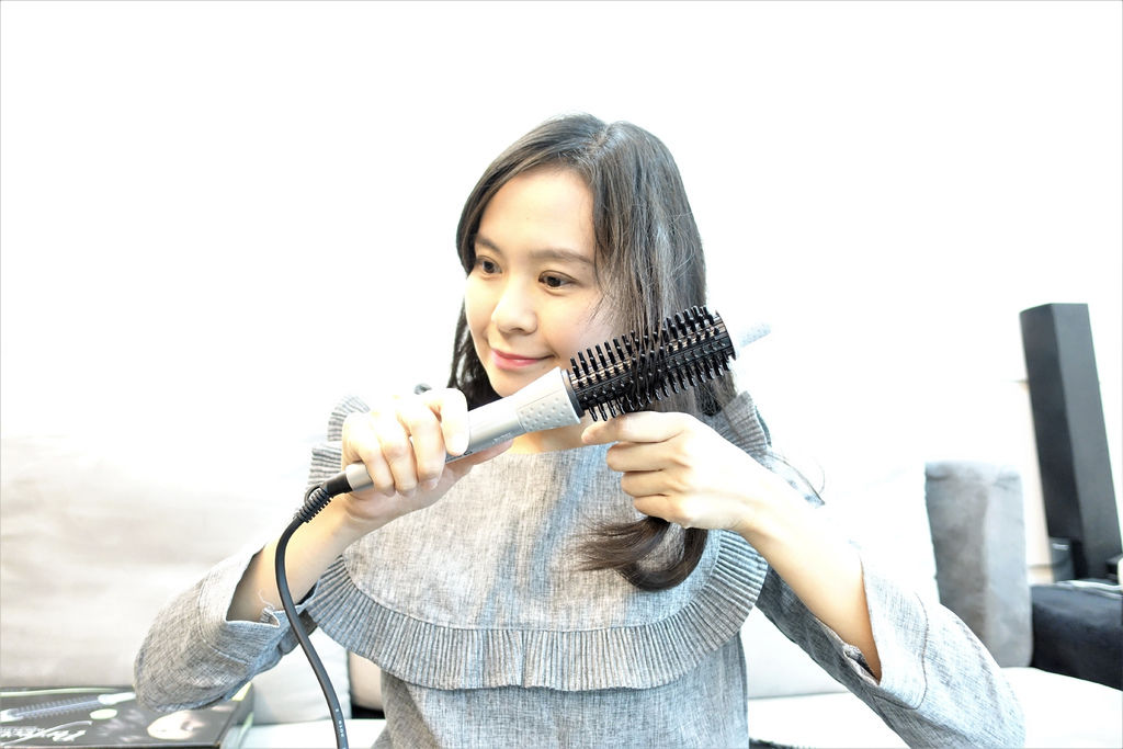 接著使用【Perfecter捲髮器】由上而下的梳順頭髮