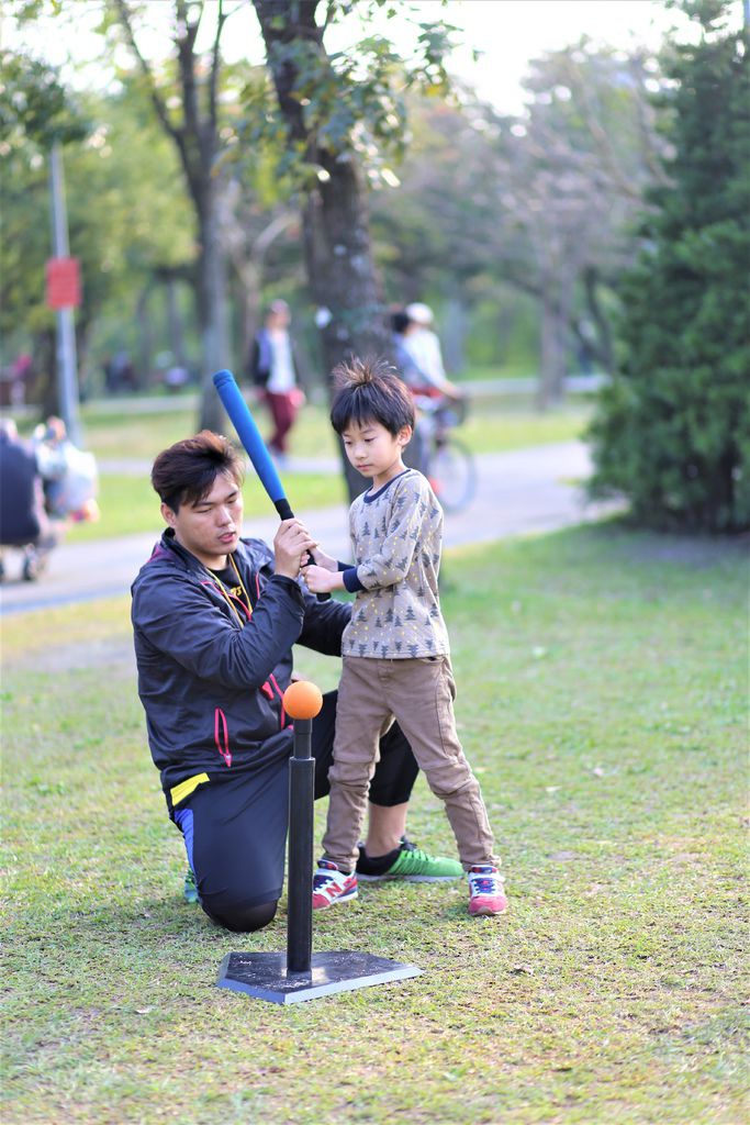 即使第一次參加體驗課程的小朋友,也都能馬上放鬆心情,跟著教練學棒球