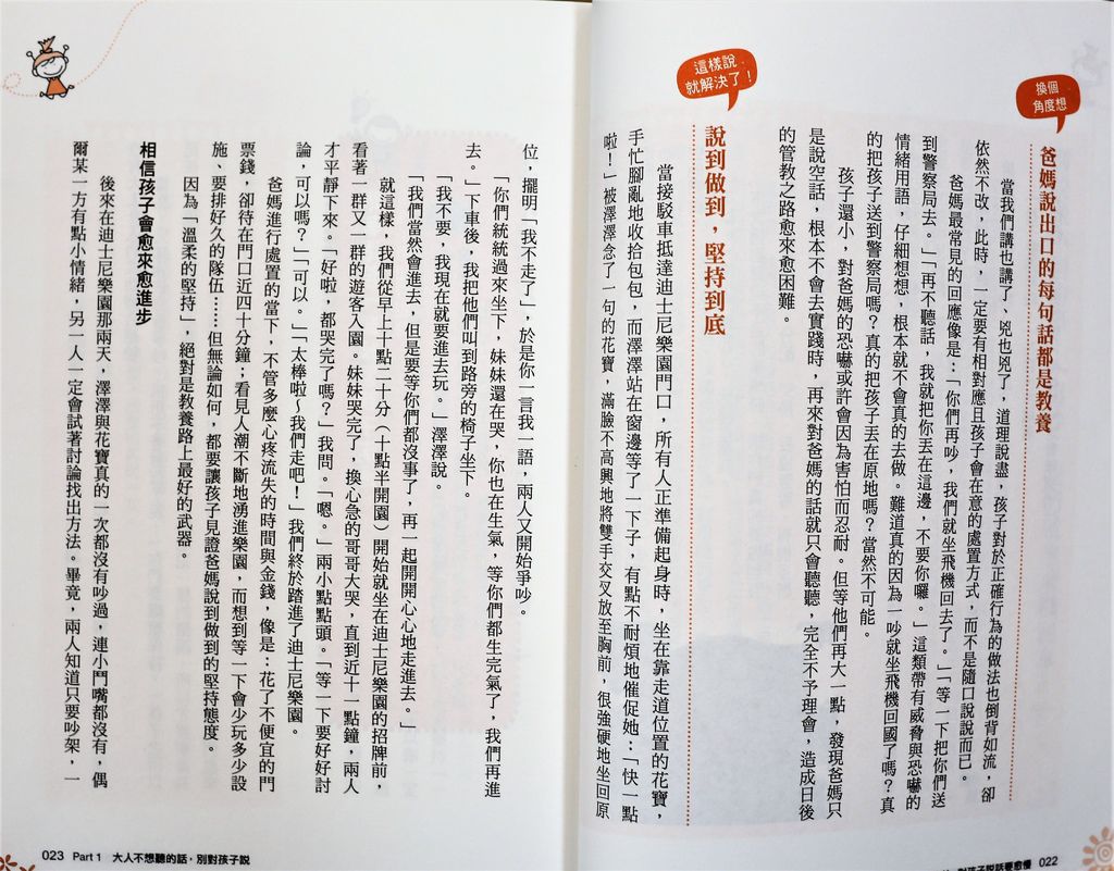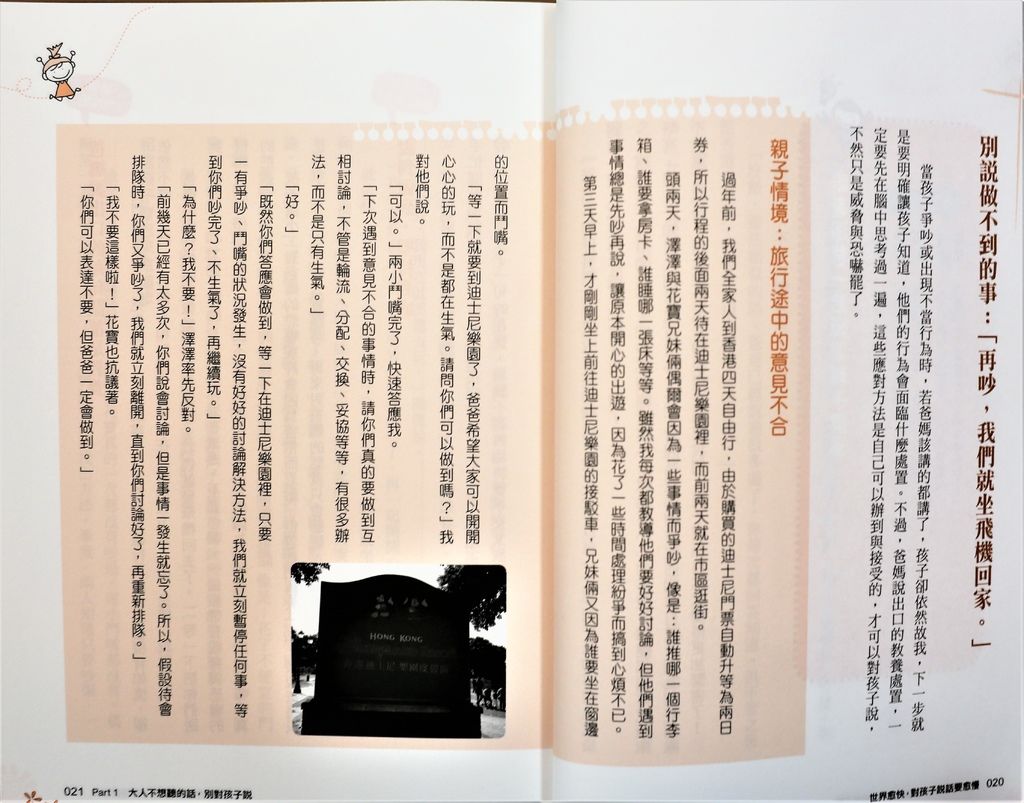 像是"爸媽說出口的每句話都是教養"、"大人也會玩到忘記時間"、"大人也不喜歡被批評"......