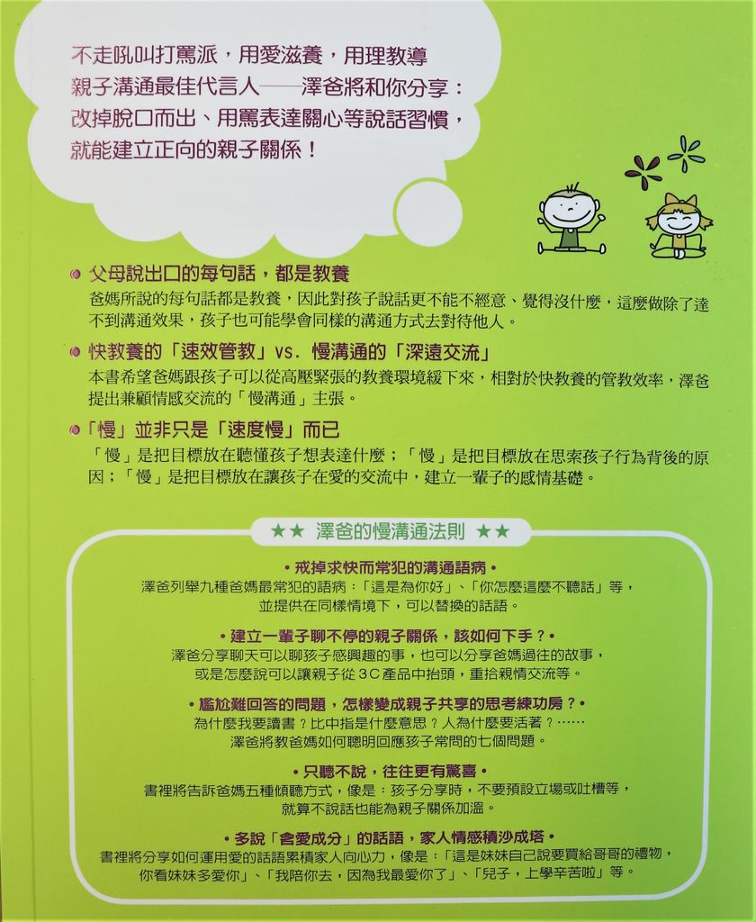 【世界越快,對孩子說話要越慢!】有個很大的特色單元~~《跟著澤爸一起練習親子溝通》