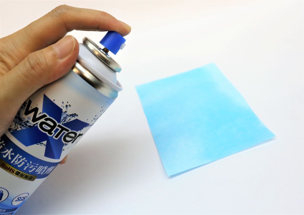 防水效果如何,我來做個小實驗~~~準備一張淺藍色的紙,均勻噴灑防水防污噴劑