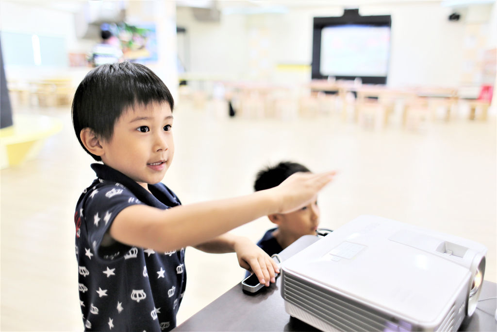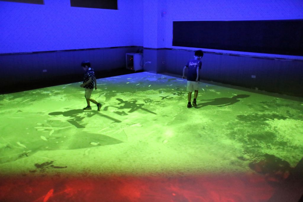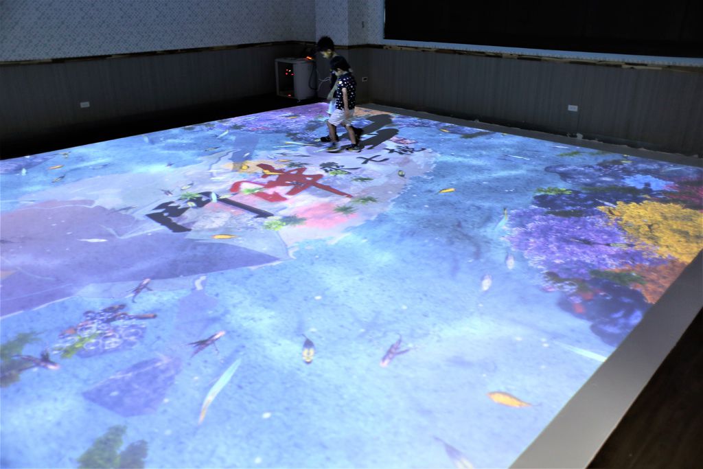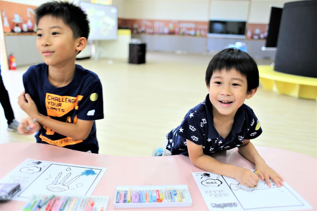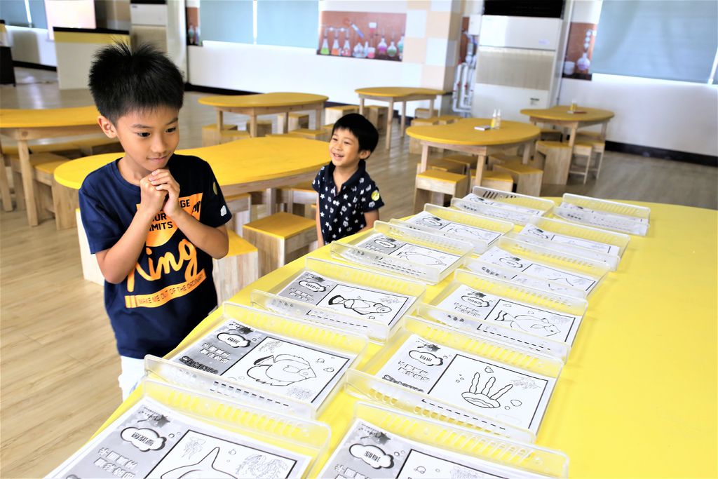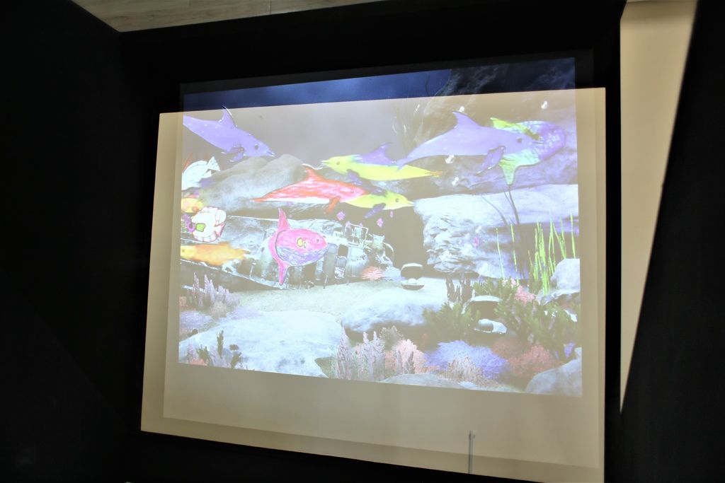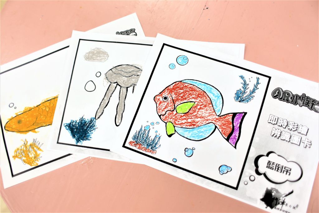 看大家認真的著色,等一下五顏六色的魚群,都會被投影在螢幕上喔