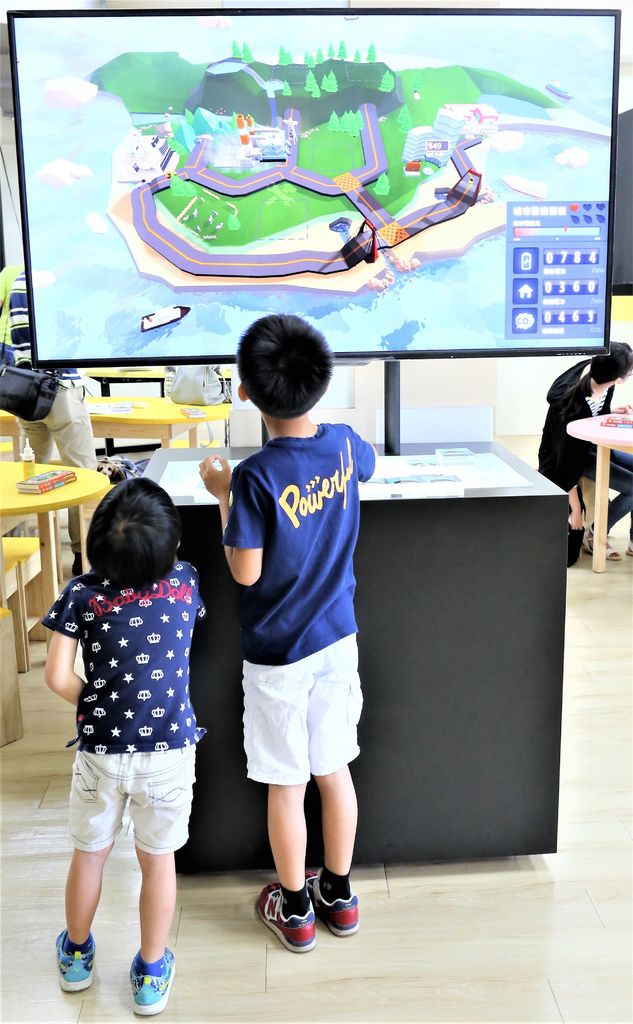 這個龜山島互動遊戲桌,結合了城市綠能的概念