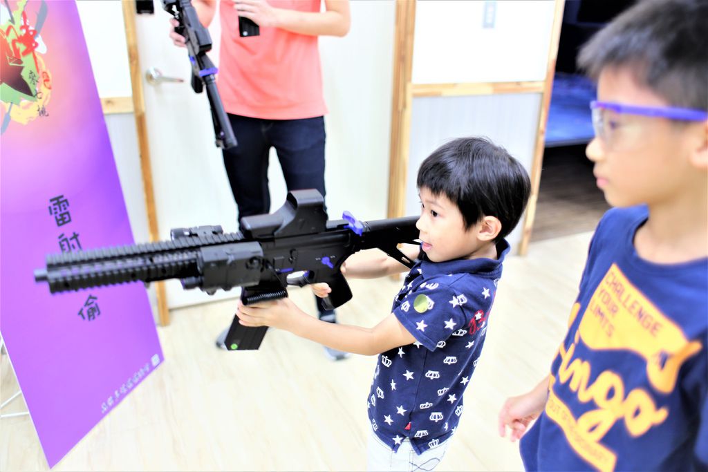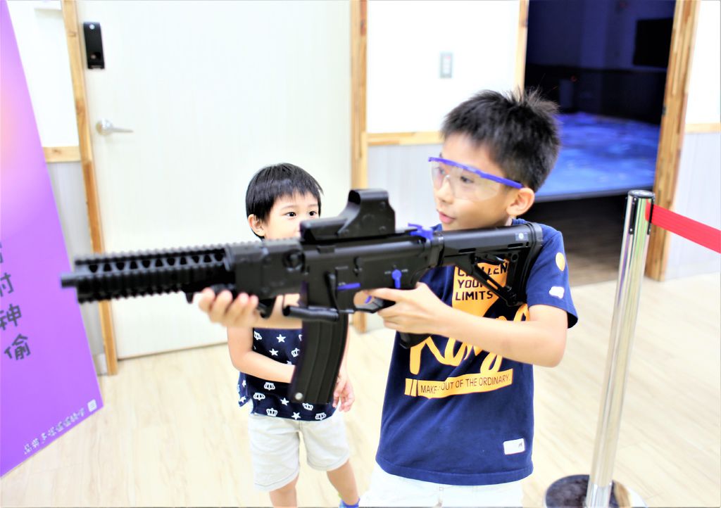 雖然槍很大隻,但是五歲的甫甫也很有架式喔!