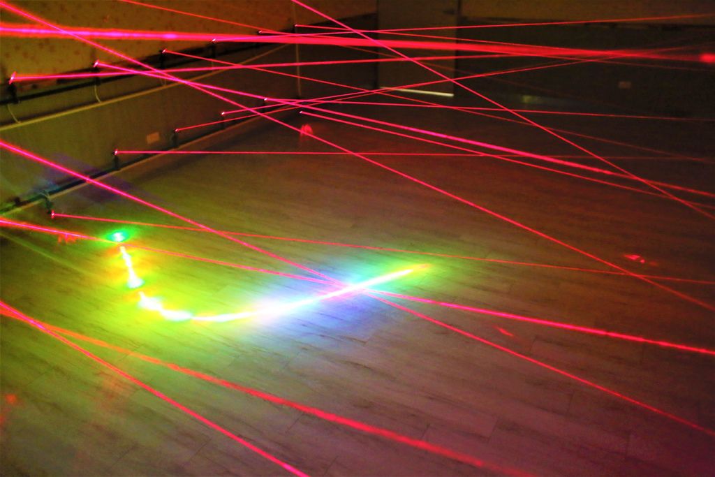 "雷射神偷"體驗,非常刺激,碰到雷射線還會發出警報聲喔