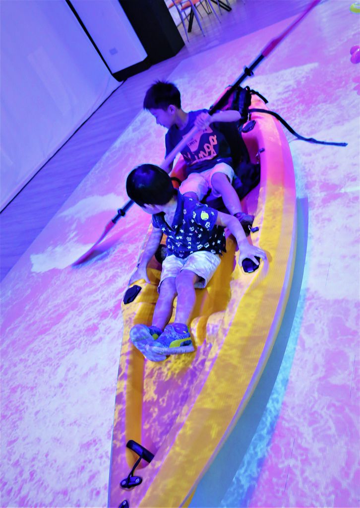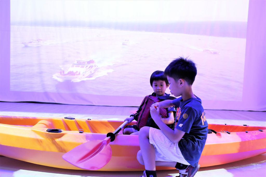 大廳也有划船體驗,快乘著獨木舟划向大海的另一頭吧