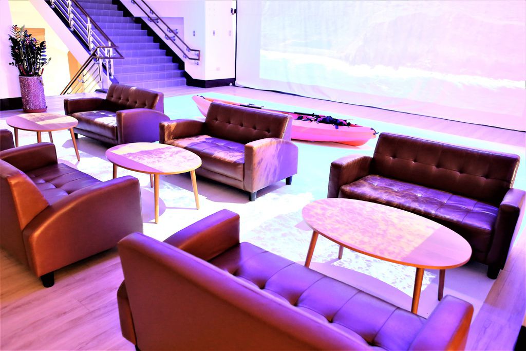 還有舒適沙發區,在這裡看著螢幕的大海,歇歇腳也是一種享受