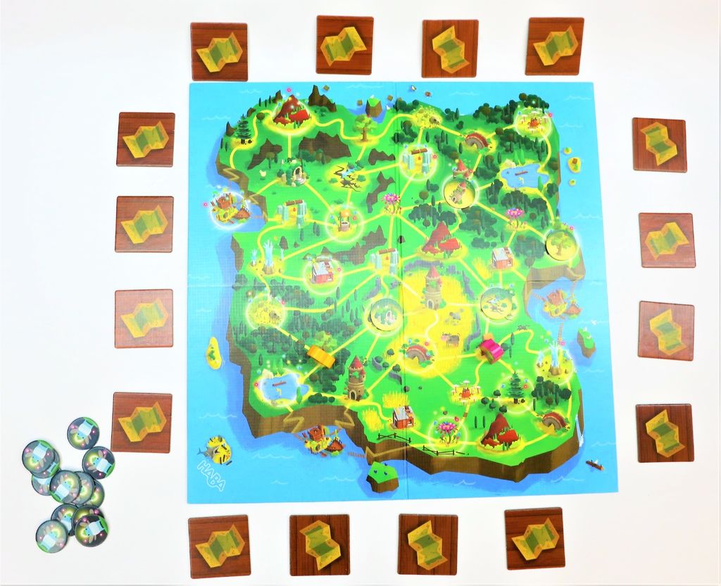 1. 將路徑卡拼接、終點放大鍋卡、女巫與魔法師放在起點