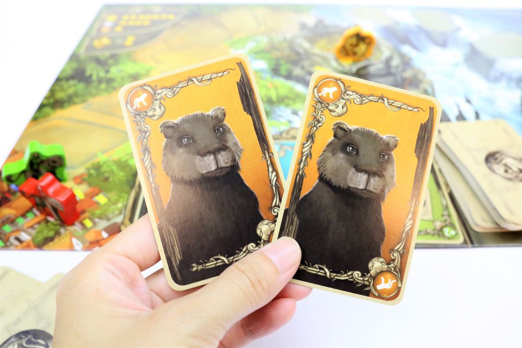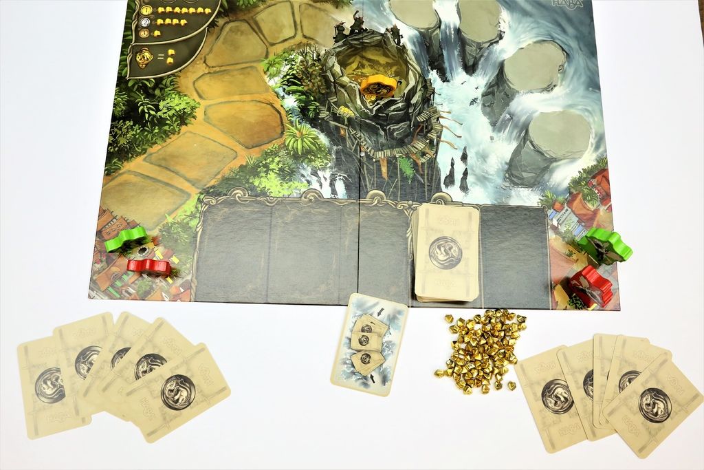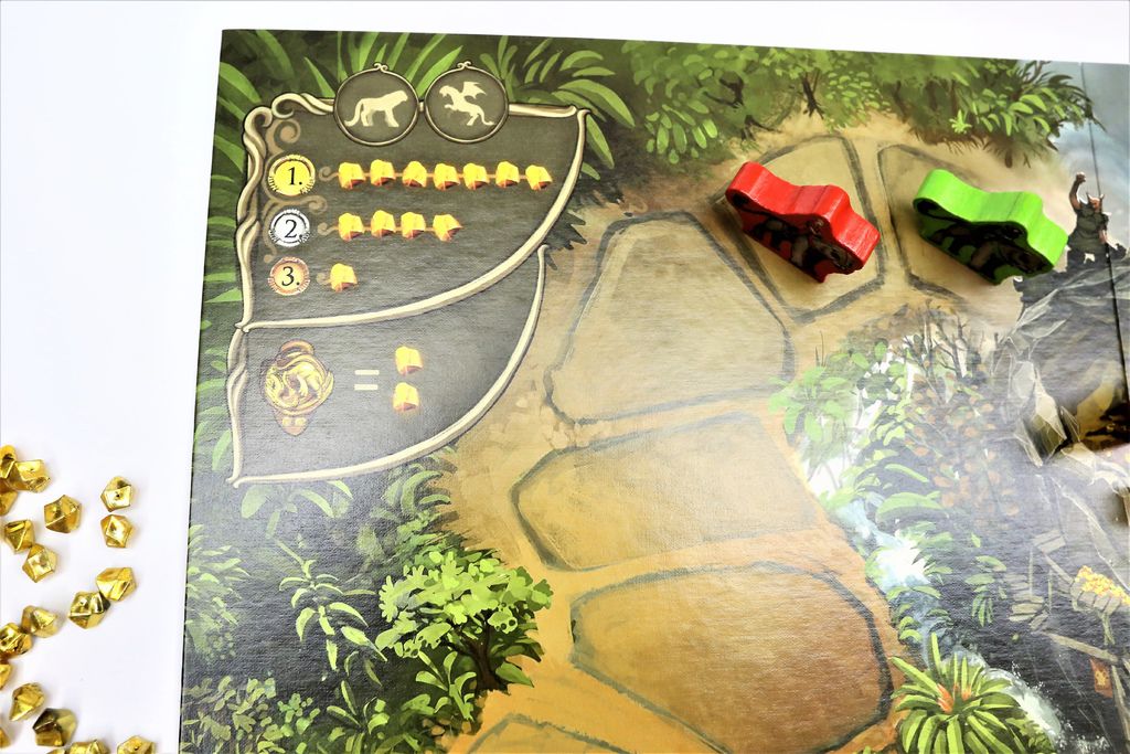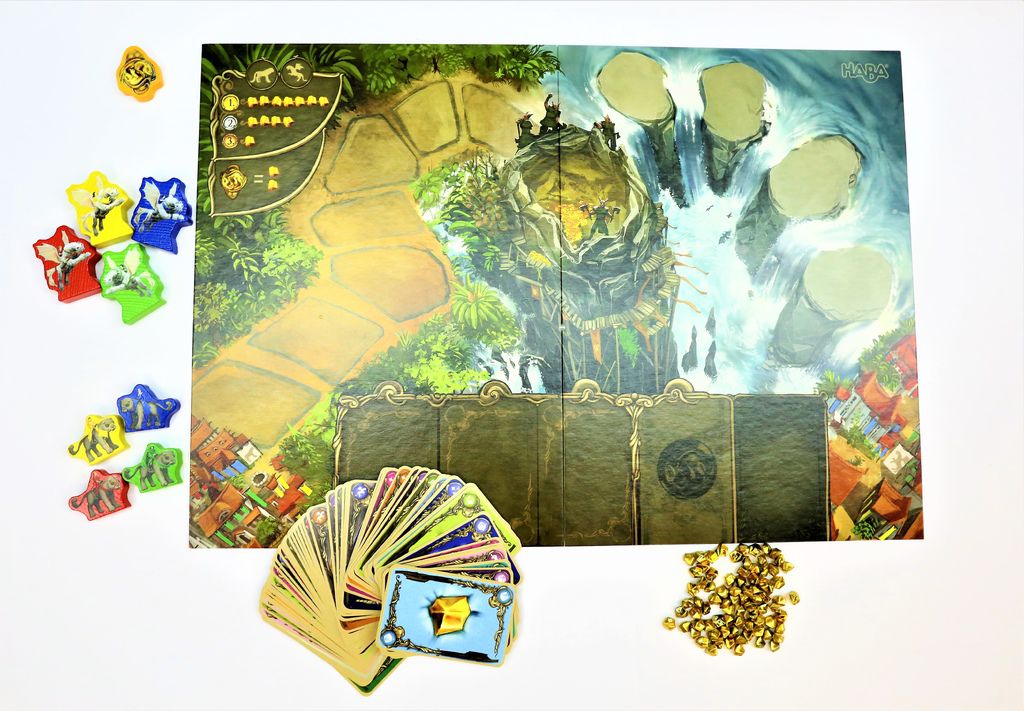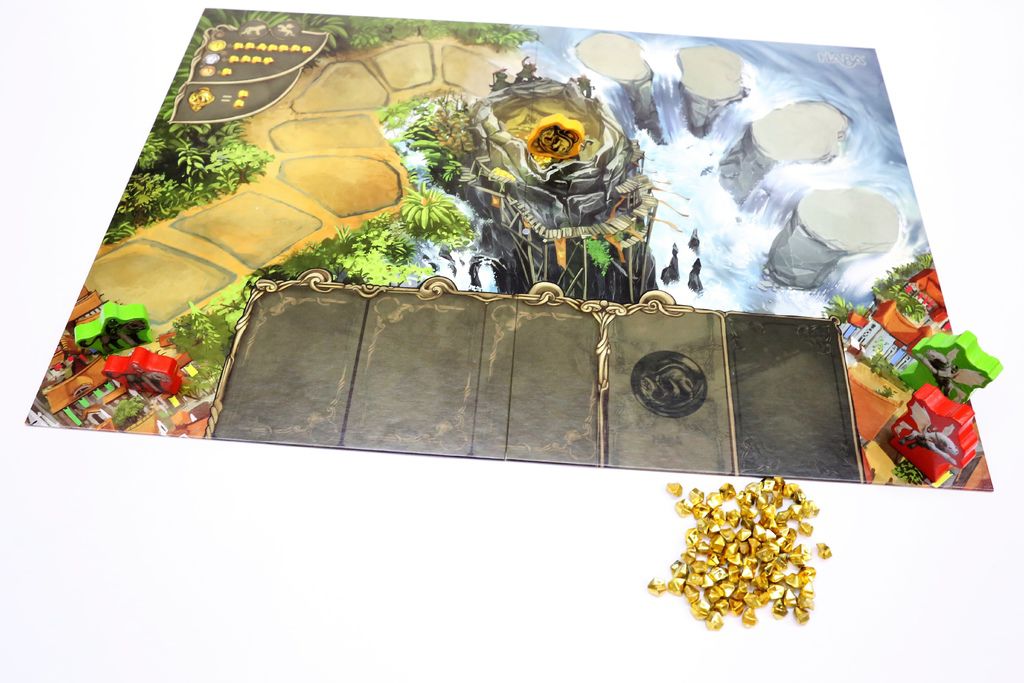 遊戲配件有質感非常好的遊戲圖板、飛天獅鷲、懸崖跑獸、魔法石、遊戲卡與金塊