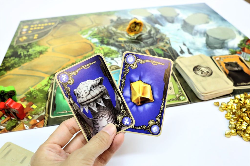 打出1張金塊+1張飛天獅鷲,可以拿到一個金塊並前進一格