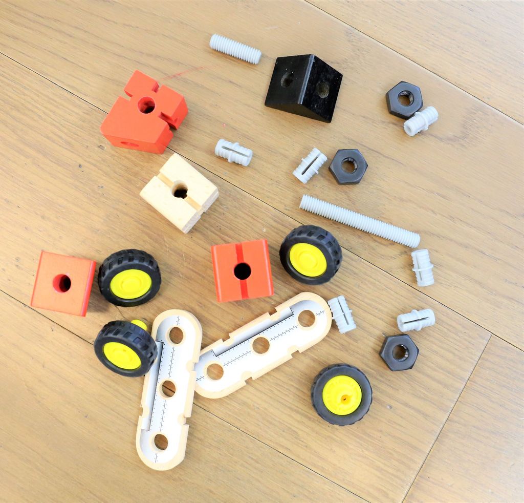 【創意木匠】系列都是以三角形與四方形的積木、長形積木片、塑膠螺絲帽組等零件組合而成