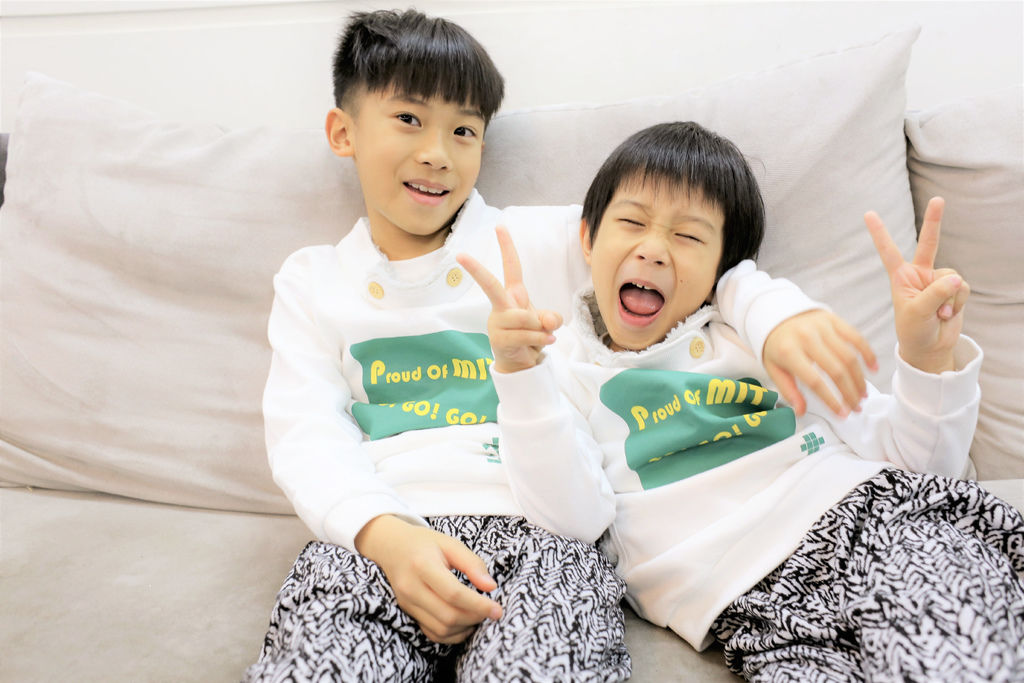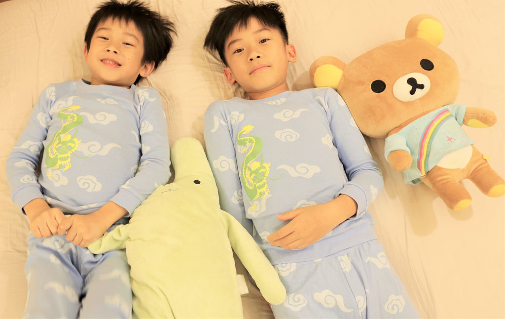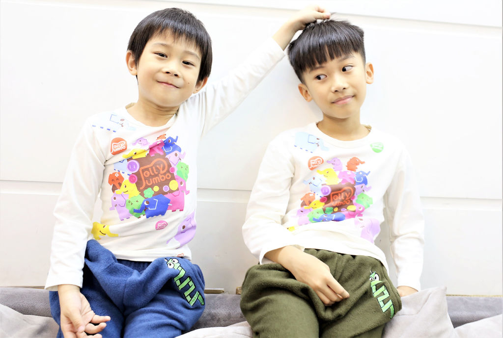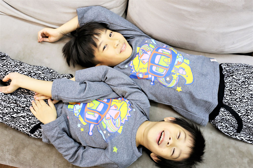 看兩兄弟身上穿的舒適睡衣,質料超級柔軟,而且這是"夜光睡衣"